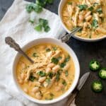 Keywords: white chicken chili, creamy chili, shredded chicken chili, easy chili recipe, comfort food, one pot chili