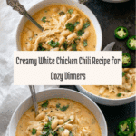 White Chicken Chili is a creamy, flavorful twist on traditional chili featuring shredded chicken, white beans, and green chilies. This comforting dish balances mild spice with a rich, creamy base made from cream cheese and heavy cream. Perfect for casual dinners or meal prep, it pairs well with cornbread, tortilla chips, or fresh salad sides.