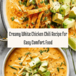 Keywords: white chicken chili, creamy chicken chili, easy chili recipe, chicken and white beans, comfort food, weeknight dinner
