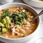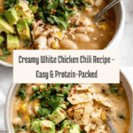Keywords: white chicken chili, easy chili recipe, healthy chicken chili, gluten free chili, one pot chili, white bean chili, creamy chili, quick dinner